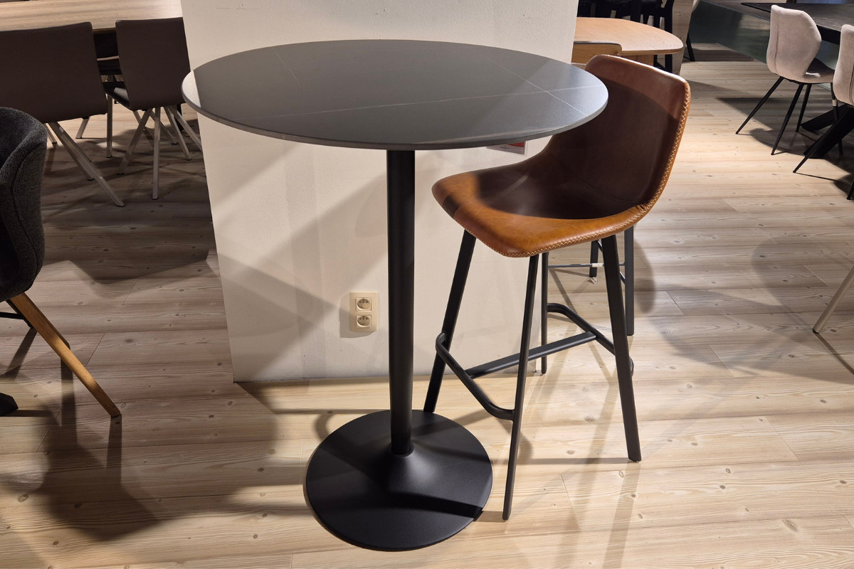 Modèle d'exposition. Cette table de bar noire est peut-être modeste par sa taille, mais elle apporte néanmoins une grande personnalité. La forme ronde permet de créer plus d'espace dans n'importe quelle maison, mais surtout dans les moins spacieuses. Grâce au plateau en céramique aux stries contrastées et à la fine base en forme de trompette en métal, c'est un meuble à la fois pratique et captivant. Venez le découvrir dans notre showroom Meubles Belot à Soignies.