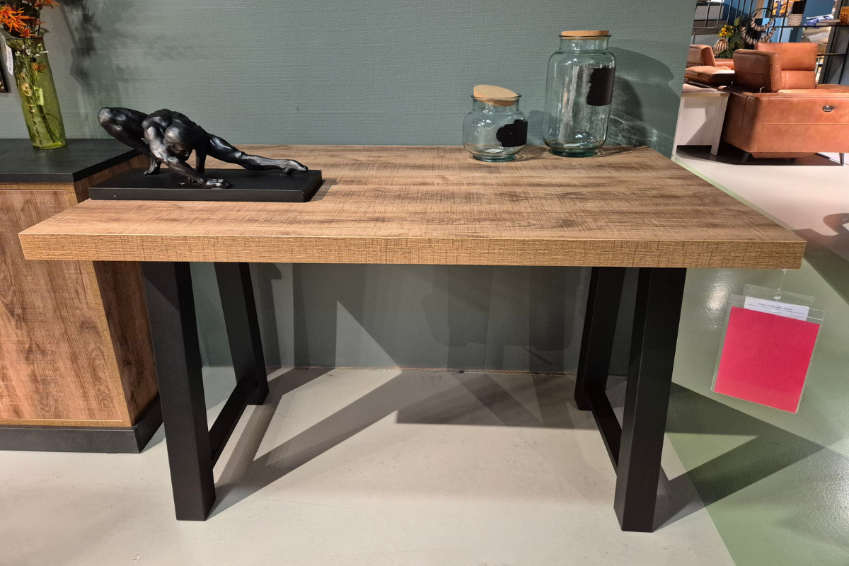 Modèle d'exposition ou stock restant. Table de bar de la magnifique salle à manger Owen en finition Tropix. Assortiment entre le bois et le noir qui donnera un style industriel à votre intérieur. Venez le découvrir dans notre showroom Meubles Belot à Soignies.