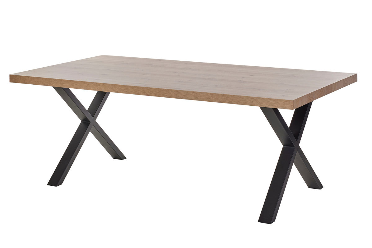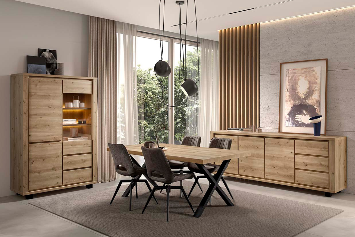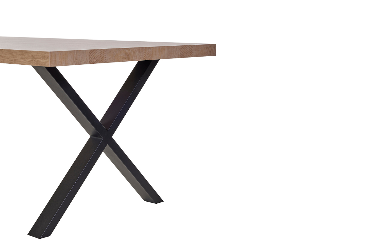 La table Uri se distingue par son piétement en X, au style affirmé et moderne, qui apporte stabilité et caractère à la salle à manger. Son design chaleureux invite aux moments de convivialité, à découvrir chez Meubles Belot.