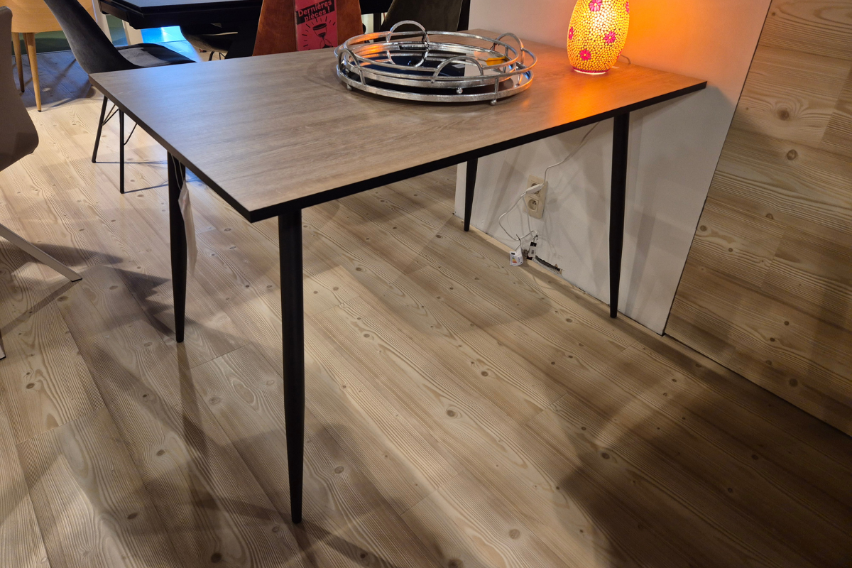 Modèle d'exposition ou stock restant. Découvrez la table Wilma, une pièce moderne et élégante parfaite pour votre salle à manger ou votre cuisine. Avec ses dimensions de 120*75*80 cm, cette table compacte est idéale pour les petits espaces tout en offrant suffisamment de place pour accueillir vos repas en famille ou entre amis. Son plateau chêne blanchi contraste élégamment avec ses pieds noirs, ajoutant une touche de sophistication à votre intérieur. Venez voir la table Wilma dans notre showroom Meubles Belot à Soignies.