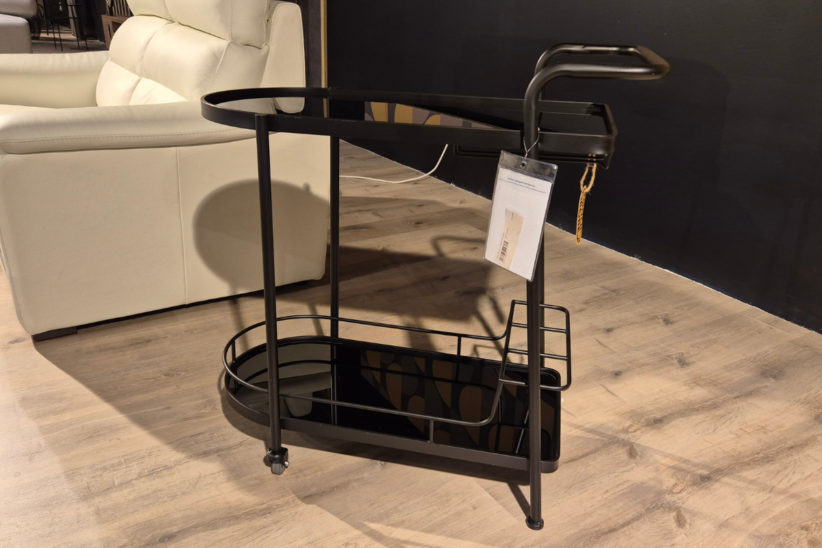 Modèle d'exposition ou stock restant. Le trolley GIULIA est un élégant chariot de service au design raffiné et fonctionnel. Doté de deux plateaux pratiques, il permet de disposer verres, bouteilles ou accessoires avec style. Monté sur roulettes, il se déplace facilement pour accompagner vos moments conviviaux. Un accessoire chic et pratique à découvrir chez Meubles Belot.