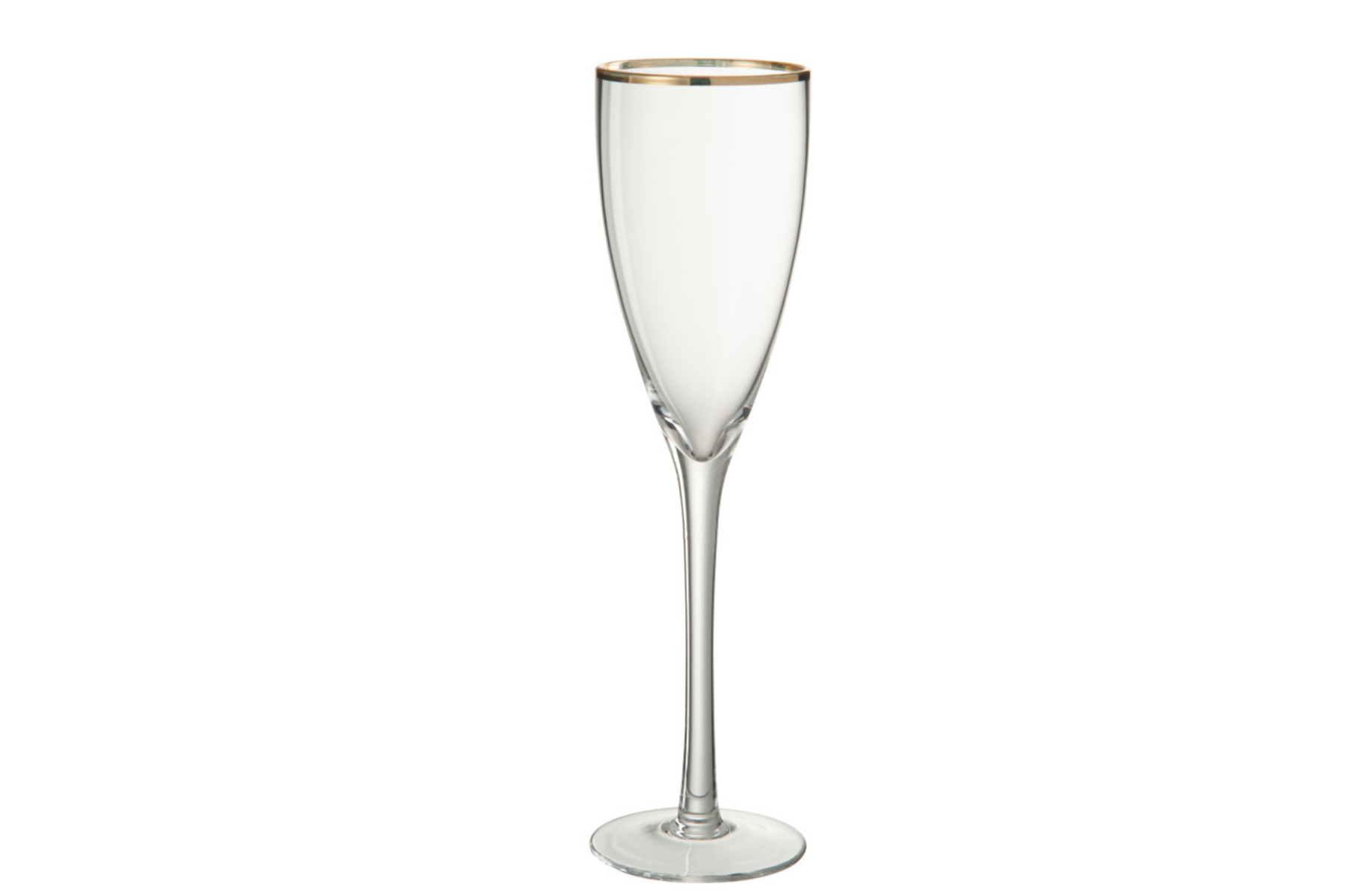 Ajoutez une touche de luxe à vos célébrations avec ce verre à champagne au bord doré de J-Line. Design élégant et transparent, parfait pour les mariages, anniversaires et comme cadeau chic.