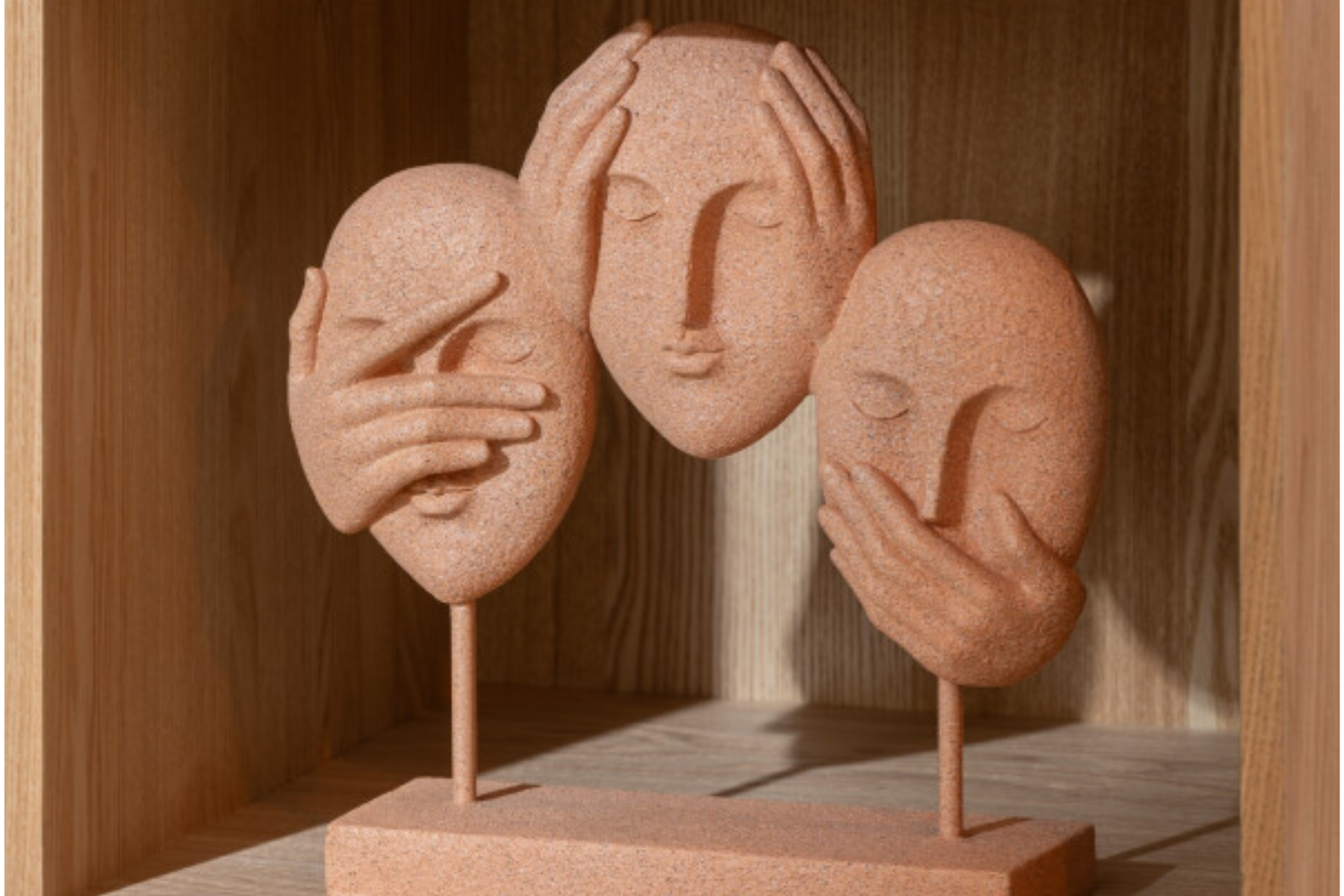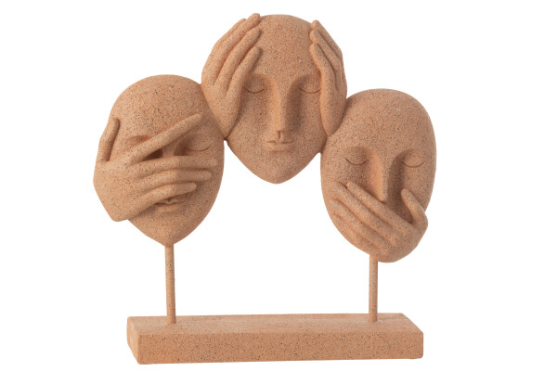 Le visage “Ne rien voir, ne rien entendre, ne rien dire” en résine terracotta est une sculpture pleine de symbolisme et d’élégance. Son design moderne et sa teinte chaleureuse apportent une touche artistique forte à votre intérieur, à découvrir chez Meubles Belot.