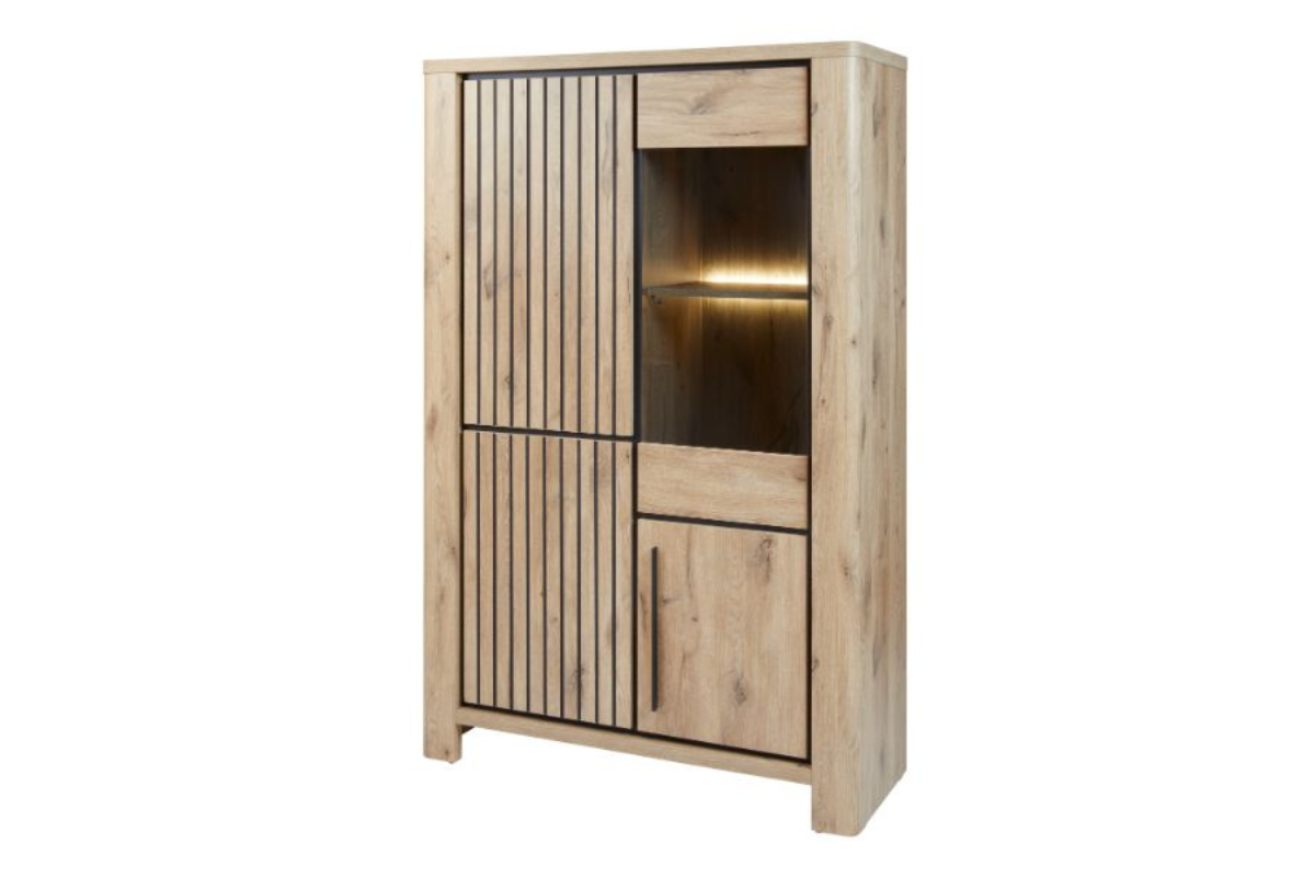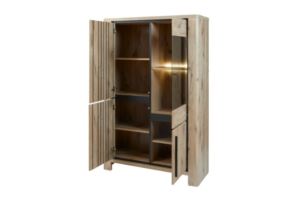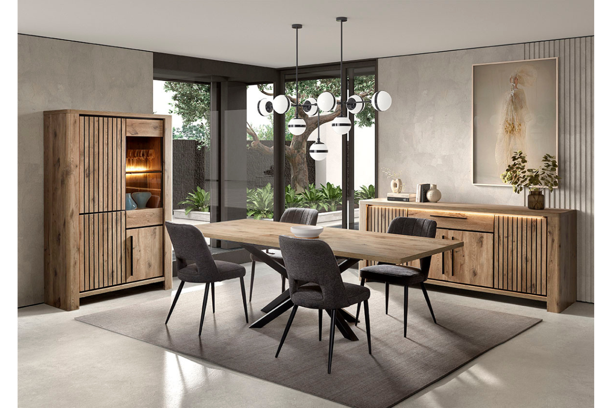 Découvrez notre élégante vitrine SANTOS - une fusion parfaite de fonctionnalité et de design. Avec ses 120 cm de longueur, elle est fabriquée en mélamine dans le coloris chaleureux Canyon Oak. Les quatre portes à ouverture par pression offrent un accès facile à de nombreux espaces de rangement. Enrichissez votre intérieur avec ce meuble contemporain, idéal pour tous les styles. Commandez dès maintenant et ajoutez une touche d'élégance à votre espace avec la collection de salle à manger SANTOS ! Venez la découvrir dans notre showroom Meubles Belot à Soignies.